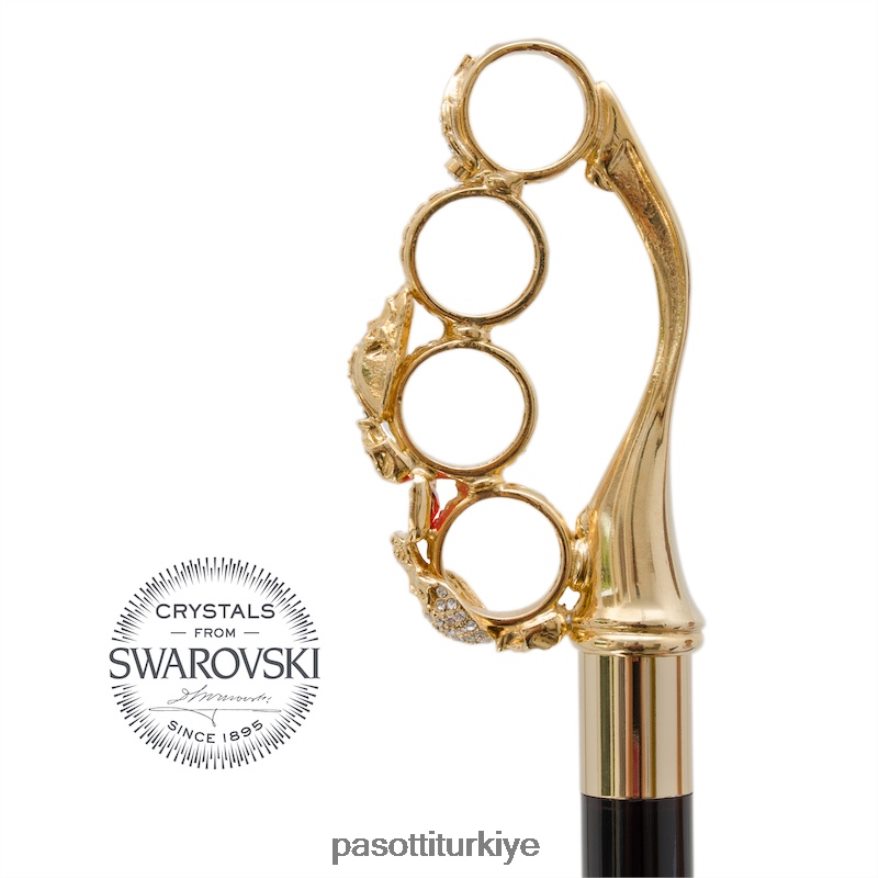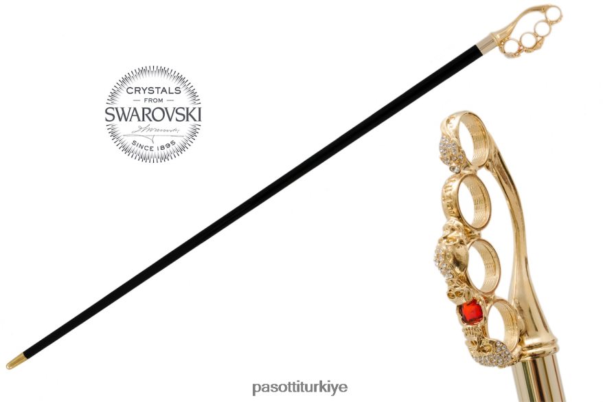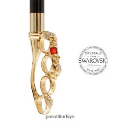 ahşap gövde, kauçuklu pirinç uç – swarovski kristalli pirinç sap