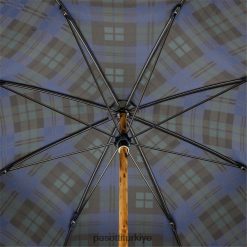 ahşap saplı mavi kareli şemsiye