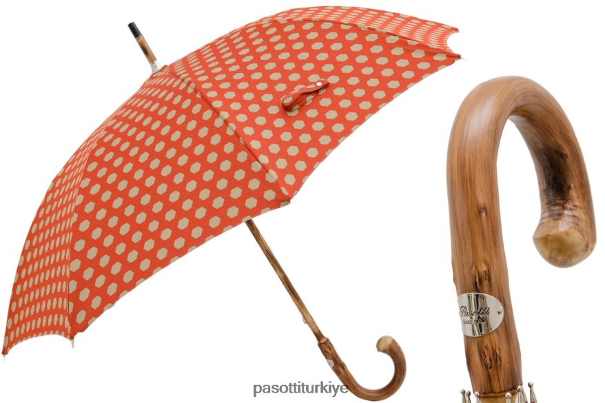 altıgen desenli kumaş şemsiye, kestane rengi sap