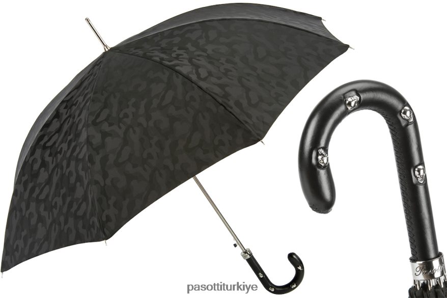 şemsiye | PASOTTI erkekler 478 11780-142 h39t – siyah kamuflaj şemsiye, kafataslı deri sap RZHTTX63