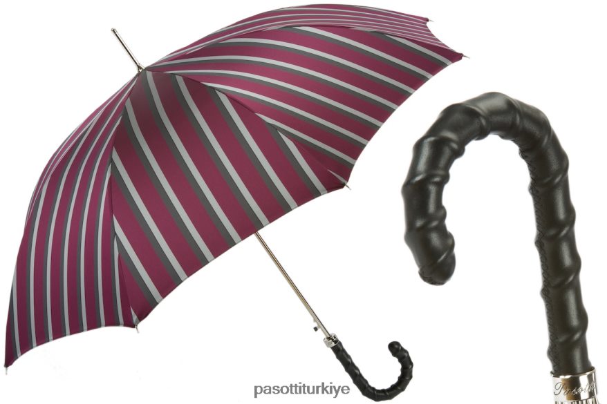 şemsiye | PASOTTI erkekler 142 6496-12 cbr – topuz uçlu masif kestane çizgili şemsiye RZHTTX102