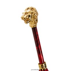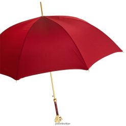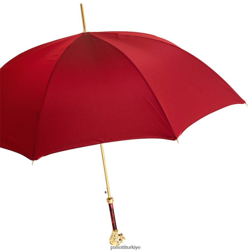 Altın aslan saplı, kasalı ve halkalı kırmızı şemsiye