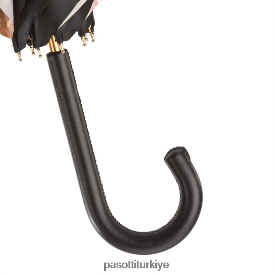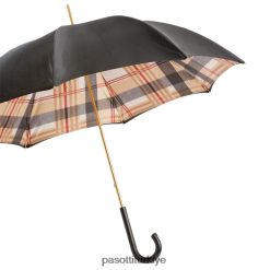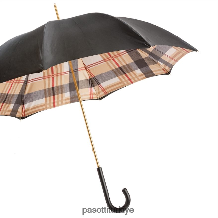 Deri saplı, çift kumaşlı ekose astarlı siyah şemsiye