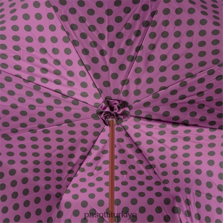 İç kısmı mor noktalı siyah şemsiye, çift kumaş