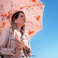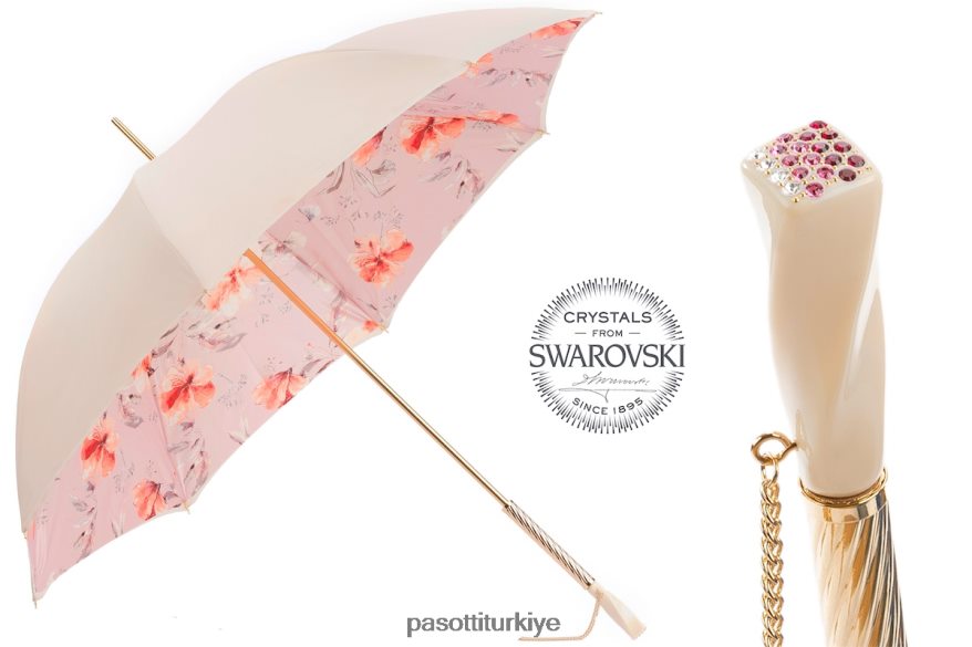 fildişi ve pembe çiçekli şemsiye