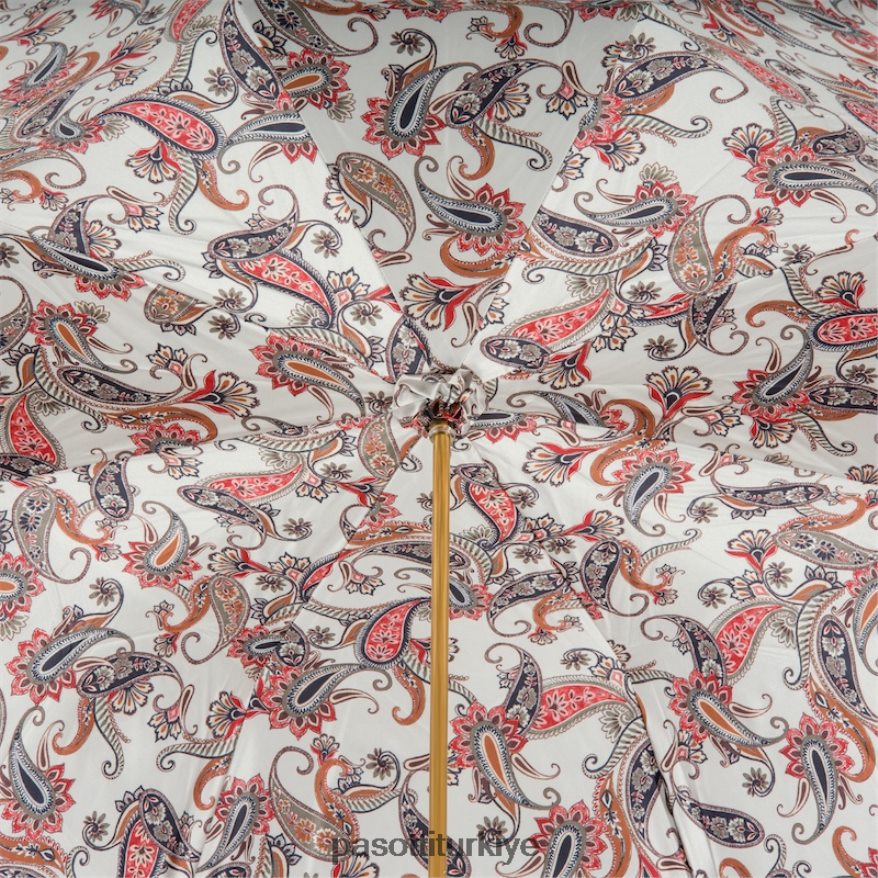 Deri saplı, çift kumaşlı şal desenli şemsiye