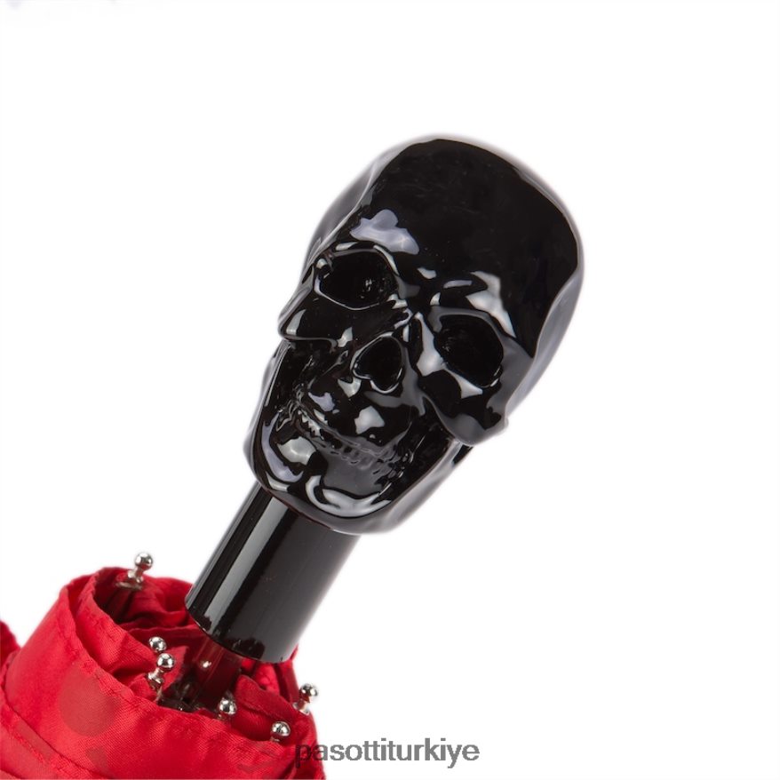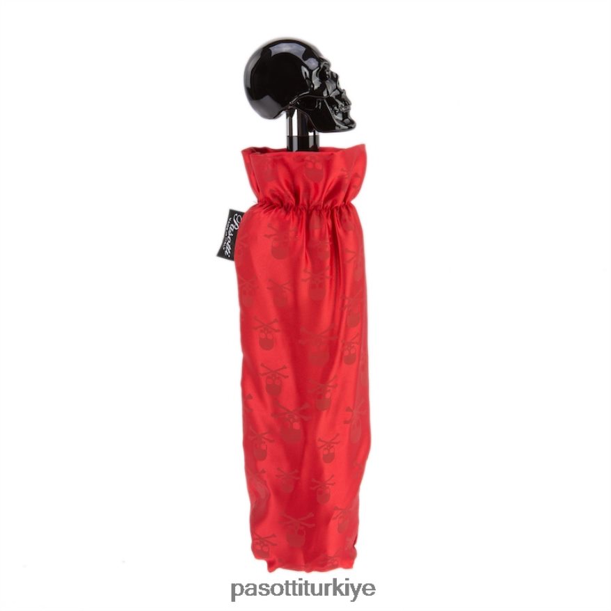 siyah kafatası saplı kırmızı katlanır şemsiye