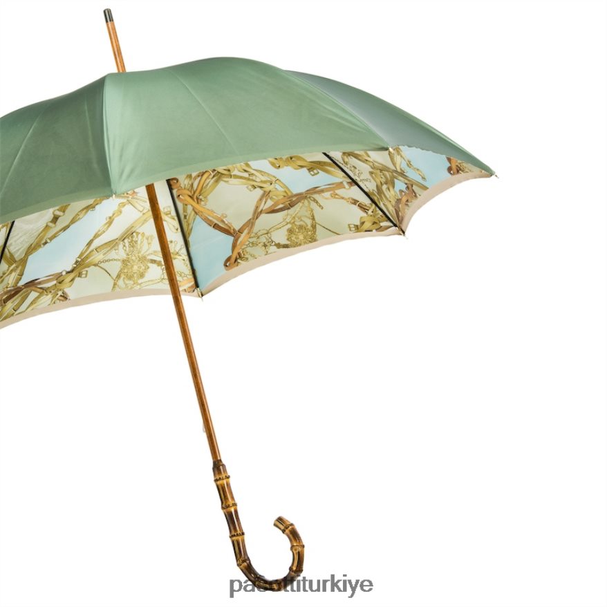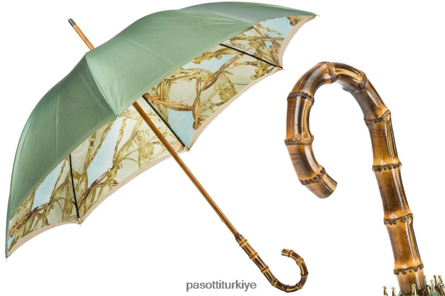 Bambu saplı, dizgin baskılı şemsiye, çift kumaş