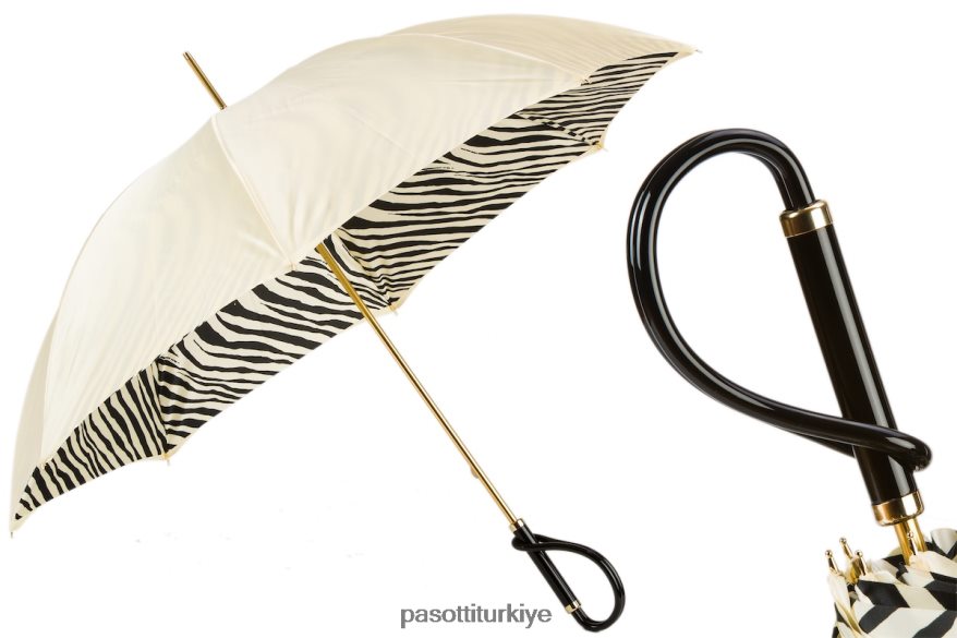 zebrin iç kısımlı, çift kumaşlı fildişi şemsiye