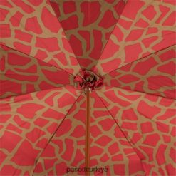 kırmızı zürafa desenli iç kısmı, çift kumaşlı şemsiye