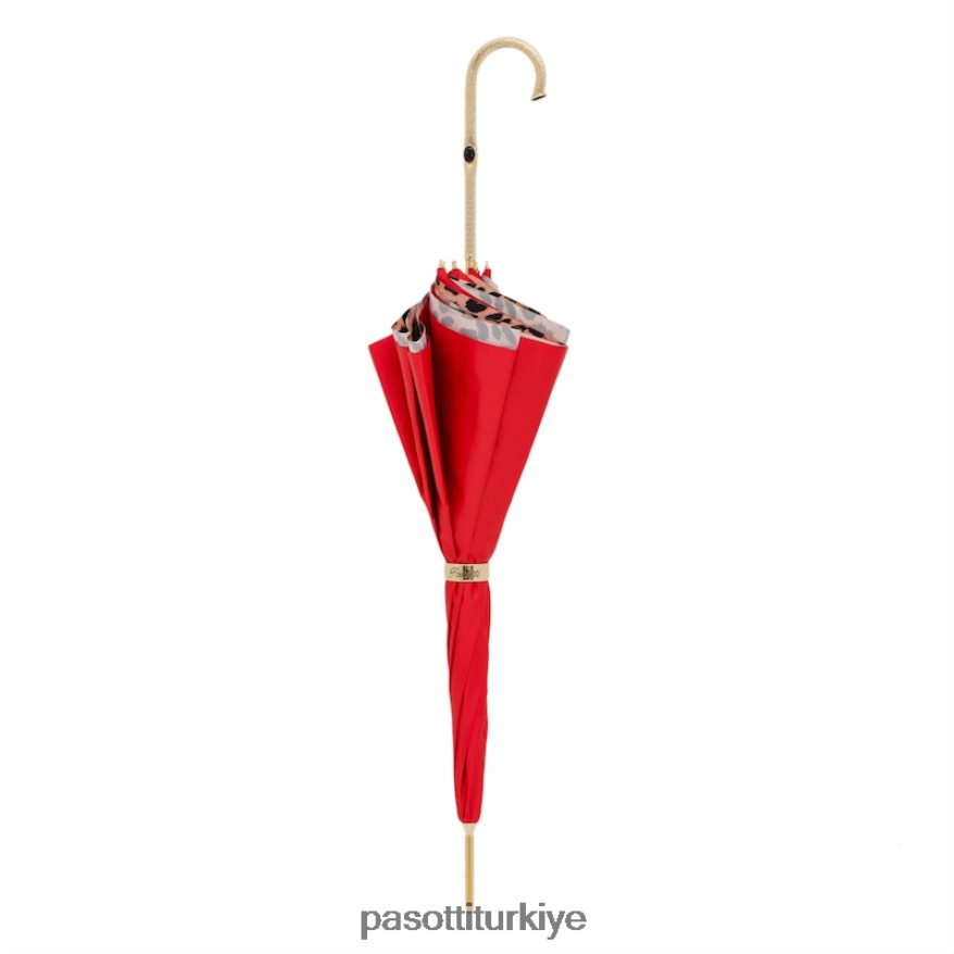 kırmızı leopar desenli şemsiye, çift kumaş
