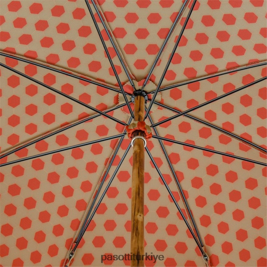 altıgen desenli kumaş şemsiye, kestane rengi sap