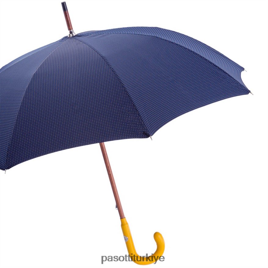 Sarı noktalı ve saplı, özel yapım lacivert şemsiye