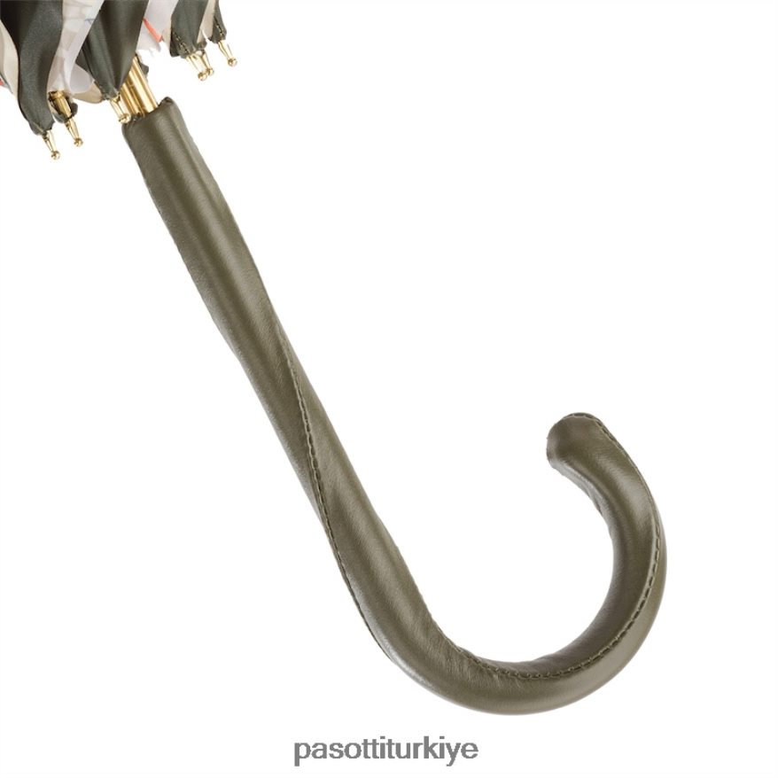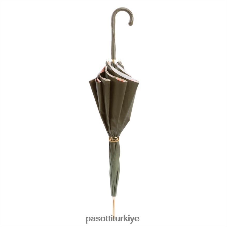 pastel yeşil şemsiye, iç kısmı çiçekli, çift kumaş
