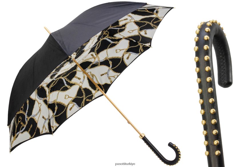 Dizgin baskılı siyah şemsiye, çift kumaş