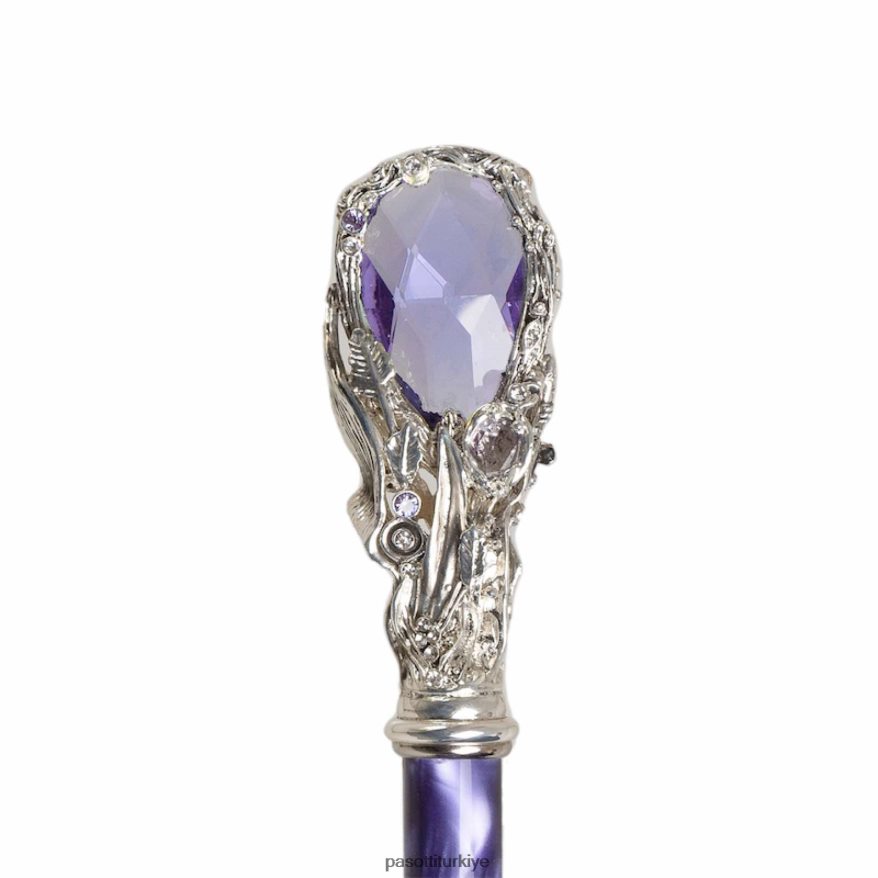 manuel açma – %100 polyester – lüks mor taşlı sap