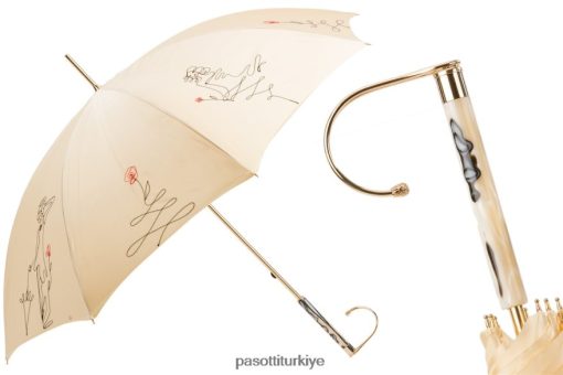 fildişi eskiz kadın şemsiyesi, çift kumaş