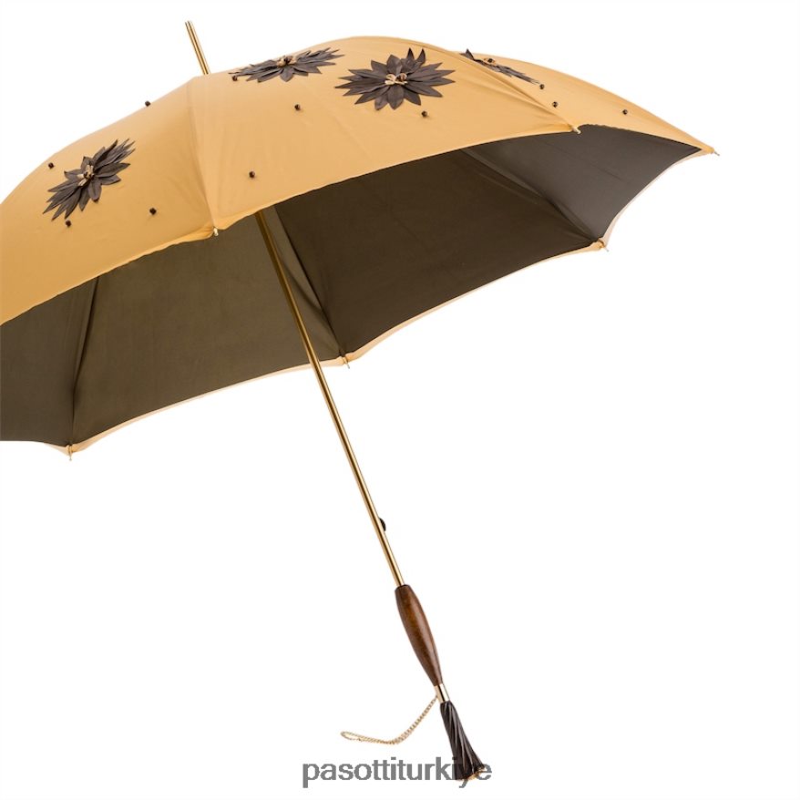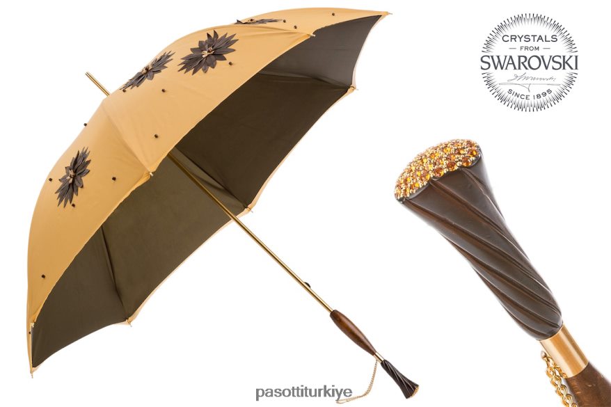 elle uygulanmış ayçiçeği ve swarovski saplı şemsiye, çift kumaş