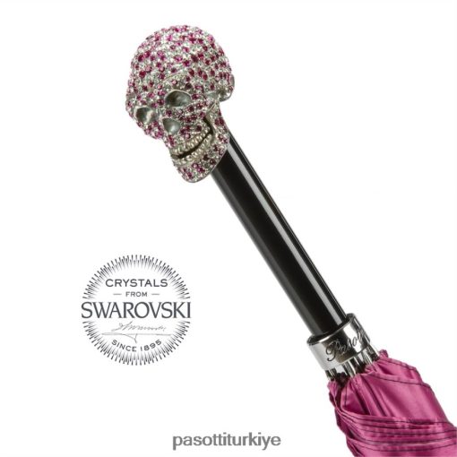 Fuşya rengi swarovski kafatasına sahip kadın şemsiyesi